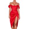 Con diseño off shoulder, low cut y high split, este vestido bodycon está muy de moda y es popular, te permite lucir sexy y encantadora.
