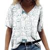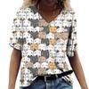 Camiseta de Mujer Gatito Anime Pintura Estampado Chica Ropa Blusa Cuello en V Harajuku Jersey Tops Verano Oversize Manga Corta Camisetas