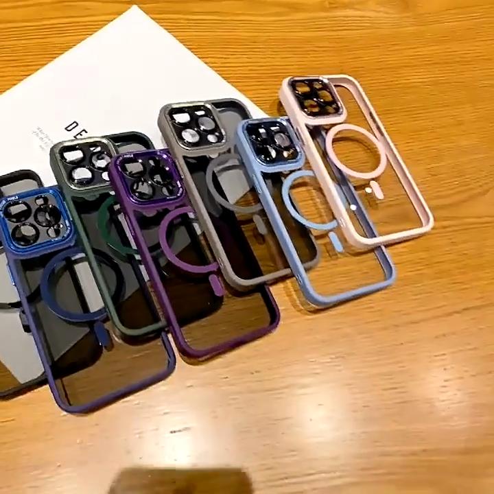 Funda magnética transparente con bisel de color de alta calidad de lujo para iPhone 15 Pro Max 14 Plus 13 12 11 Pro, cubierta completa con cubierta de película para lente