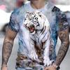 Tiger T-Shirt 3D Print Animal Men's Shirts Summer Short Sleeved Male Pullover Oversized Tops Tees Men Clothing