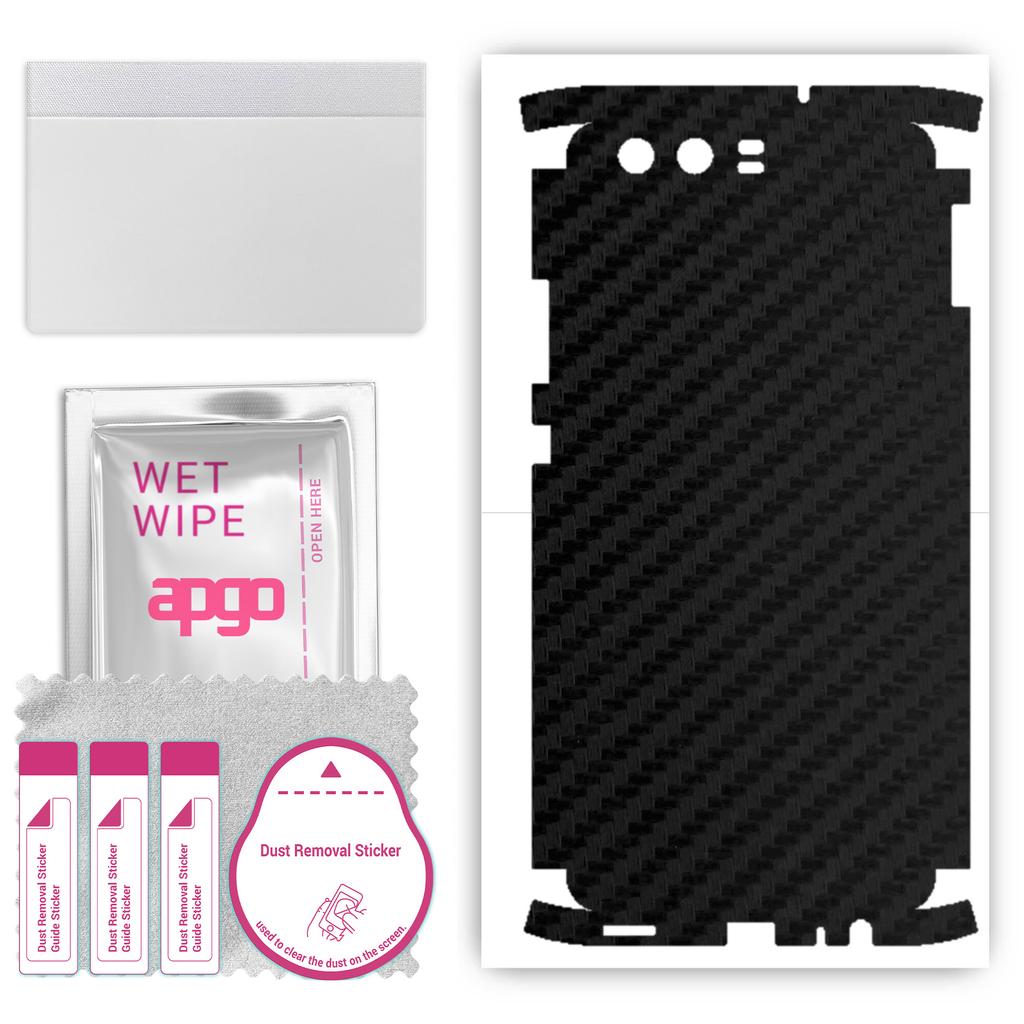apgo Protective Skin Sticker for the back+sides compatible with Huawei P10, Full Wrap Film, Foil, Vinyl - Pattern Carbon Black
