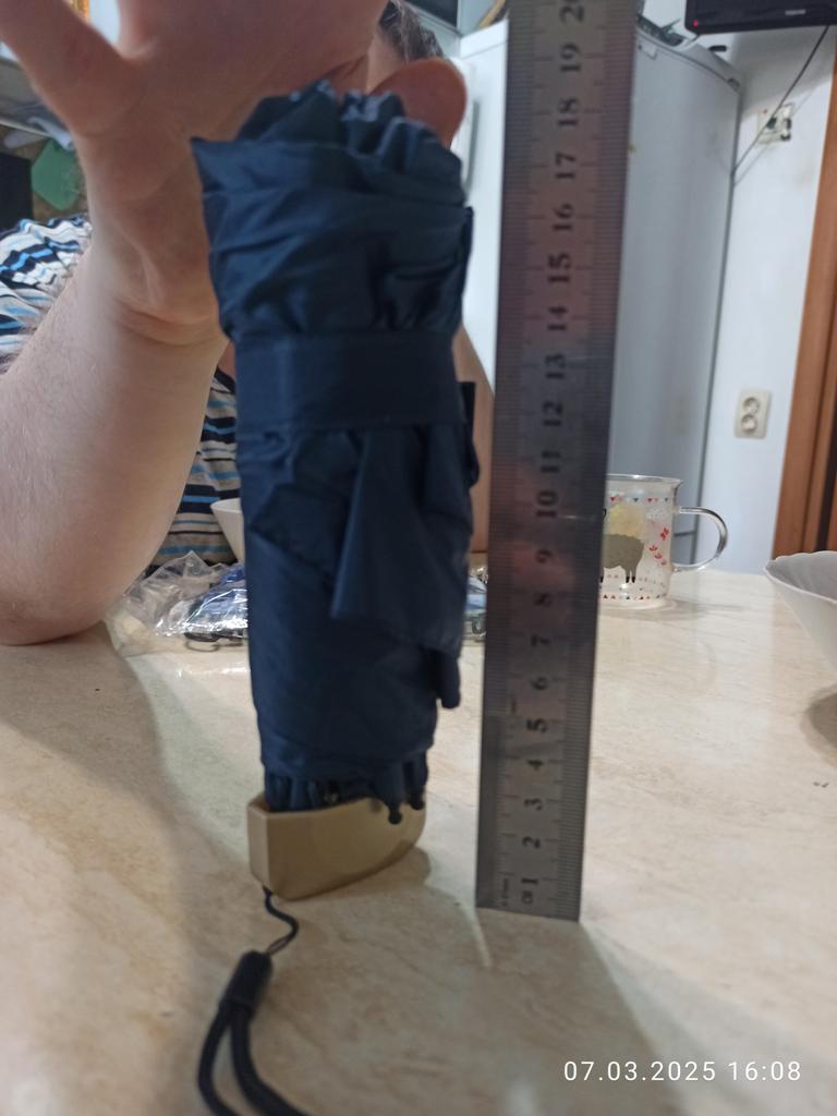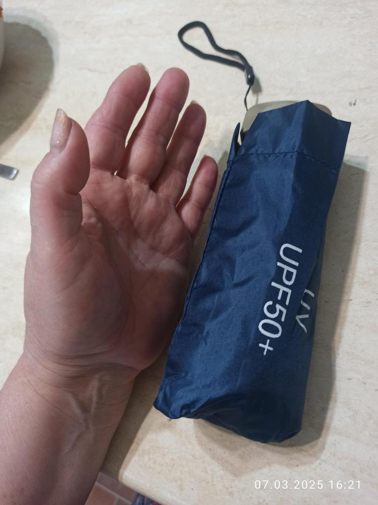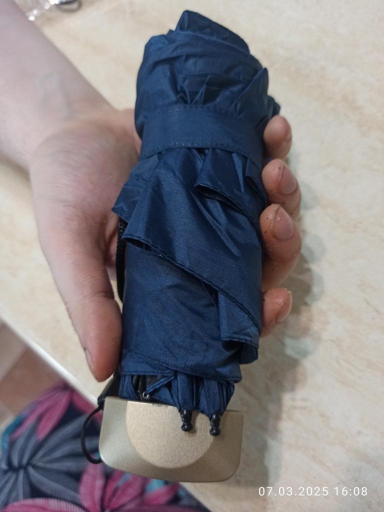 Paraguas pequeño y ordenado. Es difícil abrirlo con la mano semiparalizada, queda un poco apretado. Cerró bien, sin problemas. También resulta problemático fruncir el tejido del paraguas alrededor del eje; Se convierte en una pila. Un poco desconsiderado aquí. ¡El paraguas es bueno! Pequeña, ligera, cúpula suficiente para una persona. Te lo recomiendo.