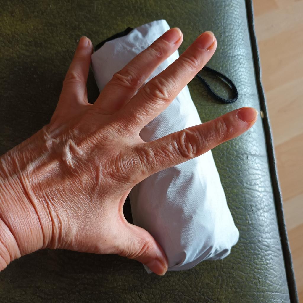 Paraguas muy práctico porque es muy pequeño. ! Pero estoy un poco decepcionado con el color blanco, que es más blanquecino.