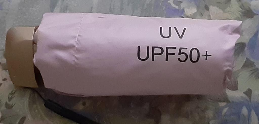 Un paraguas, pequeño, tal como quería. No sé cómo se comportará bajo la lluvia. Dice protección UV.