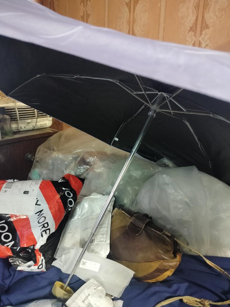 Un paraguas muy pequeño, era difícil doblarlo hacia atrás. Es casi invisible en el bolso, muy ligero. ¡Lo llamé paraguas de emergencia!