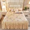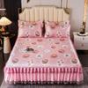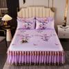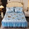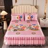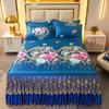 3 unids/lote juego de sábanas dobles de encaje clásico sábana azul real falda de cama, colcha de boda lavable a máquina Funda de colchón