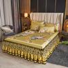 Ropa de cama de lujo lavable suave como el hielo Encaje Falda de cama Bordado Colchas escénicas Tamaño Queen King Alfombrilla plegable refrescante