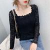 Camiseta Básica de Encaje con Cuello Cuadrado Chic Nicho Francés Nueva Moda Manga Larga S-3XL