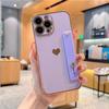 Korean Cute Electroplate Love Heart Wrist Strap Case For iPhone 14 13 Mini 12 11 Pro Max X XS XR 7 8 Plus Shokcproof Stand Cover