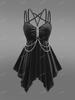 Rosegal Top gótico de tirantes de PU con ojales, cadena en capas, tiras cruzadas, pañuelo asimétrico, camisola sin espalda de terciopelo