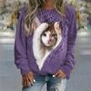 Jersey de manga larga para mujer, camiseta con estampado de gato a la moda en 3D, Jersey informal de calle para chica, suéter de cuello redondo, Top diario para mujer