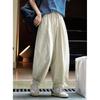 Johnature Pantalones harén sencillos y cómodos con cintura elástica para mujer, color liso, largos hasta el tobillo, holgados y con bolsillos.