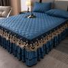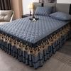 Falda de cama con encaje bordado dorado, acolchada y gruesa, con estampado de corazón, sábanas y fundas antideslizantes y resistentes al desgaste.