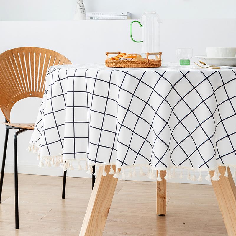 Round Grid Cotton Linen Printed Tablecloth Waterproof Oil-proof Anti-Scalding Table Cloth Coffee Kitchen Dining Table Tablecloth