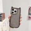 Funda Rígida Transparente con Purpurina con Parachoques Acrílico y Orejas de Gato para iPhone 15 14 13 12 11 Pro Max Plus Cubierta Trasera a Prueba de Golpes