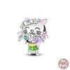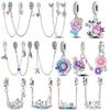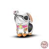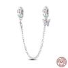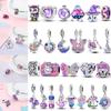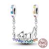 Colgantes de plata de ley S925 con forma de gato, perro, mariposa, flor y cadena de seguridad de color morado, aptos para pulseras originales DIY