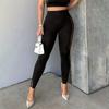 Pantalones casuales largos ajustados de cintura alta con encaje y empalme de verano para mujer