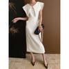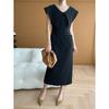 Vestido Largo Estilo Diseñador Cuello de Pico Francés Abertura en la Cintura Vestido Largo Estilo Casual Vestido de Mujer