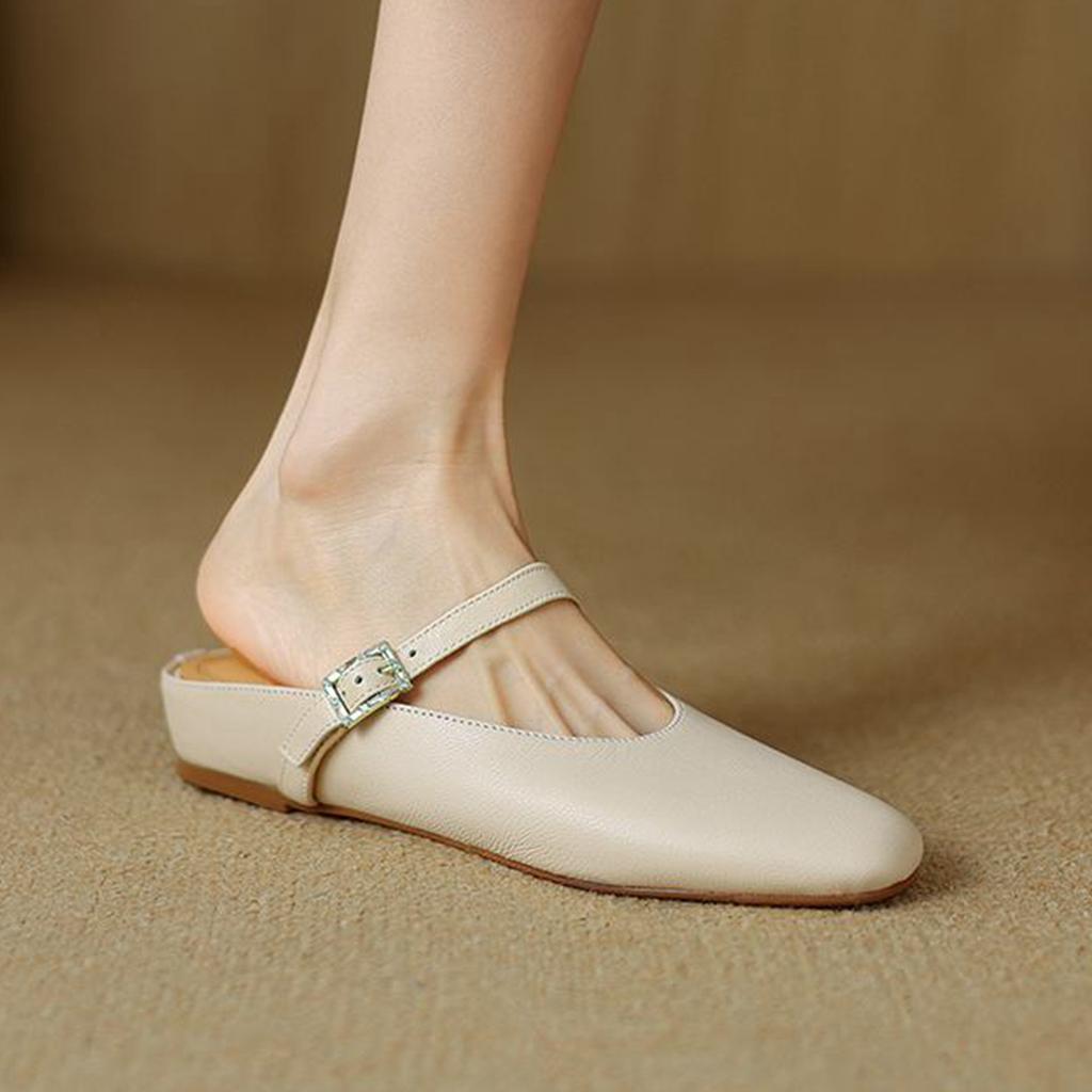 Krazing Pot, mulas de cuero de plena flor, punta cuadrada, tacones bajos, zapatillas exteriores de otoño, zapatos de verano, zapatos de tacón para mujer