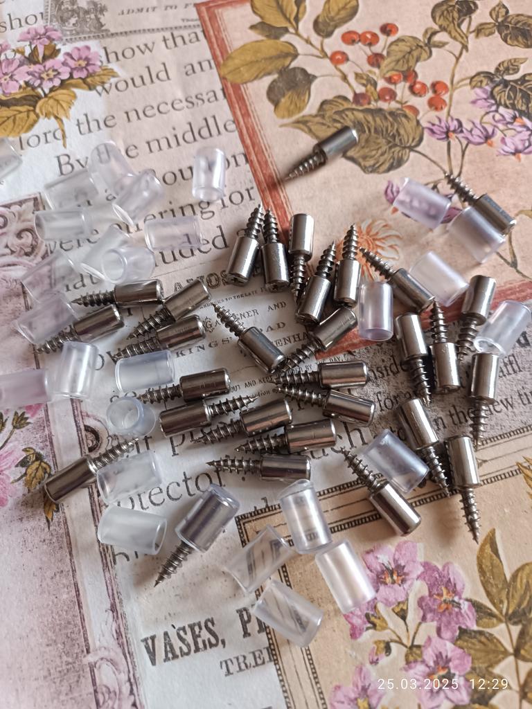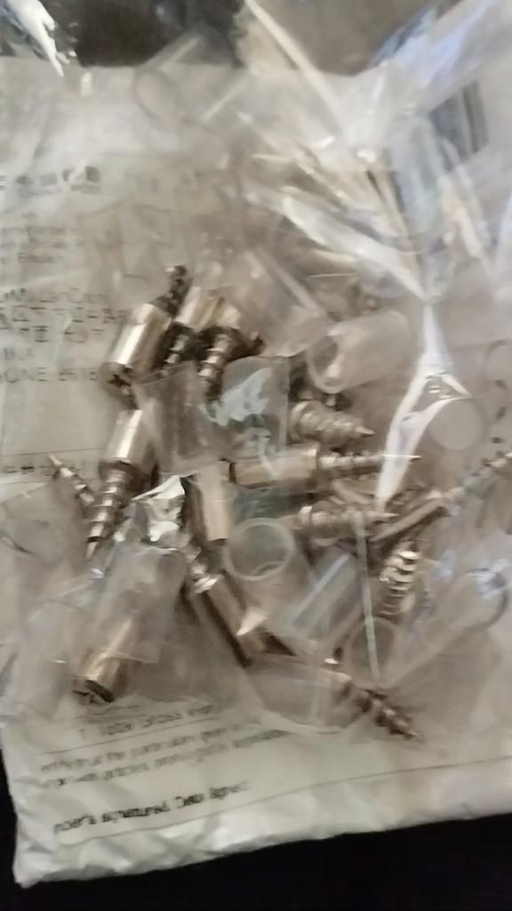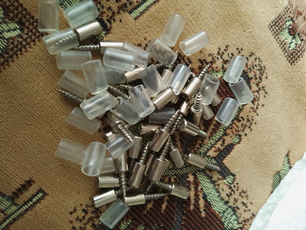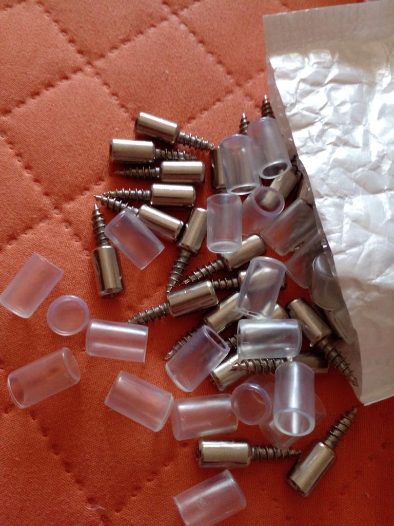 Los tornillos son geniales. PERO cuando lo tomé, o bien fui estúpido y no lo leí hasta el final, o bien fue una decisión de ingeniería. Tomé 10 piezas. Y no son diez conjuntos, sino diez partes. 5 tornillos y 5 fundas de silicona para los mismos. Esto te da suficiente para un estante en el armario y un juego de repuesto.