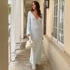 Vestido largo de punto a la moda para mujer, transparente, con escote en V, calado, para playa, vacaciones, vestido de punto sin espalda, talla grande