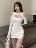 Mini vestido de mujer con cordones vendaje otoño ajustado manga larga Vestidos cortos caliente Sexy ahueca hacia fuera Vestidos elegantes ropa
