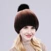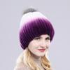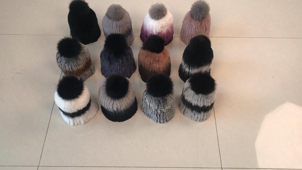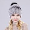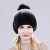 Winter hat Good elasticity women knitted 100% real rex rabbit fur cap with fox fur pompoms Natural rex rabbit fur lady warm hats