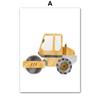 Pintura sobre Lienzo Dibujos Animados Tractor Carretilla Elevadora Grúa Coche de Ingeniería Citas de Sueño Póster Impresión Arte de Pared Nórdico Decoración Habitación Infantil