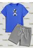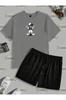 Conjunto de camiseta, chándal, parte superior inferior, pantalones cortos grises, conjunto de camiseta, girar del revés a 30 grados y lavar.