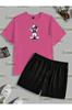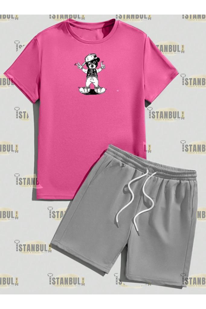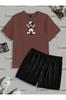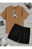 Conjunto de camiseta y pantalones cortos con estampado de oso Happy Street para hombre, talla grande, talla grande, conjunto de parte superior inferior de chándal