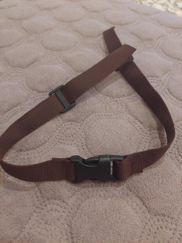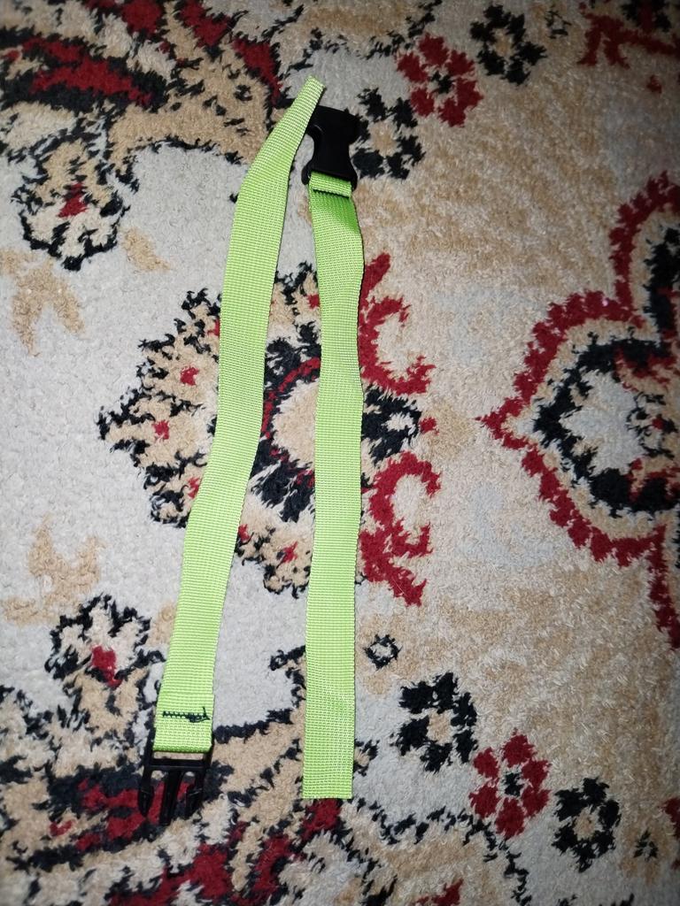 Buena correa con cierre fuerte. La longitud debe ser suficiente para sujetar las correas.