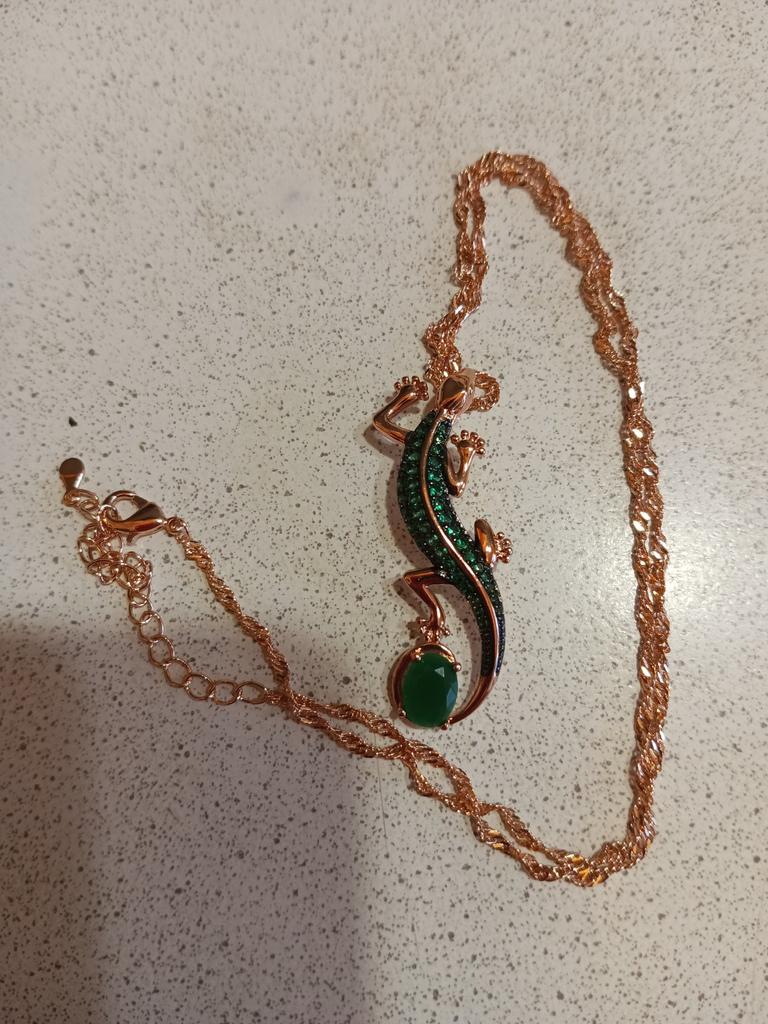 ¡Un colgante genial, brilla con esmeraldas! Hace tiempo que quería una salamandra. ¡Gracias Joom!
