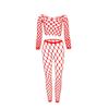 Conjunto de dos piezas de blusa de manga larga y pantalones de malla para mujer, lencería sexy de rejilla abierta hueca, lencería transparente de talla grande, lencería sexy