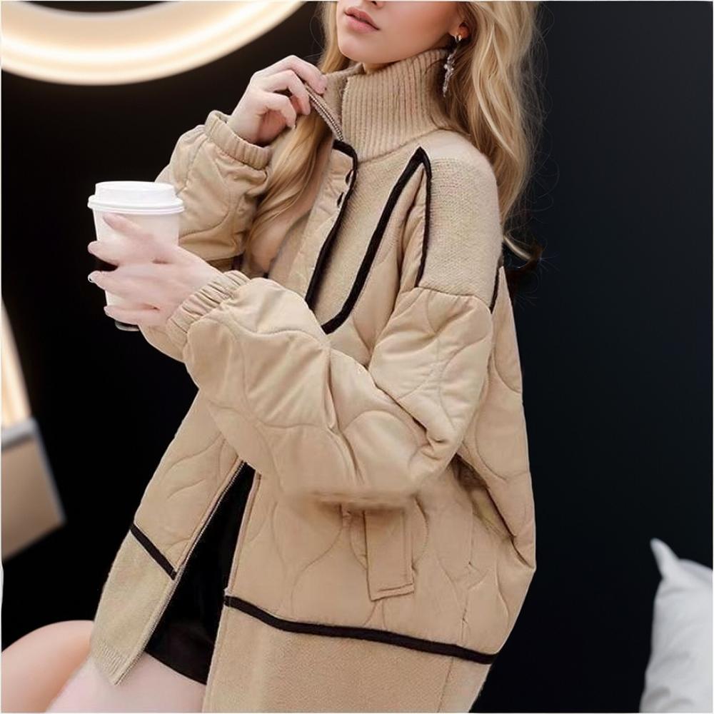 DIMANAF 2024 Tallas Grandes Invierno Oversize Suéteres para Mujer Cuello Alto Patchwork Abrigo Acolchado Jersey Chaqueta de Punto Suéter Holgado