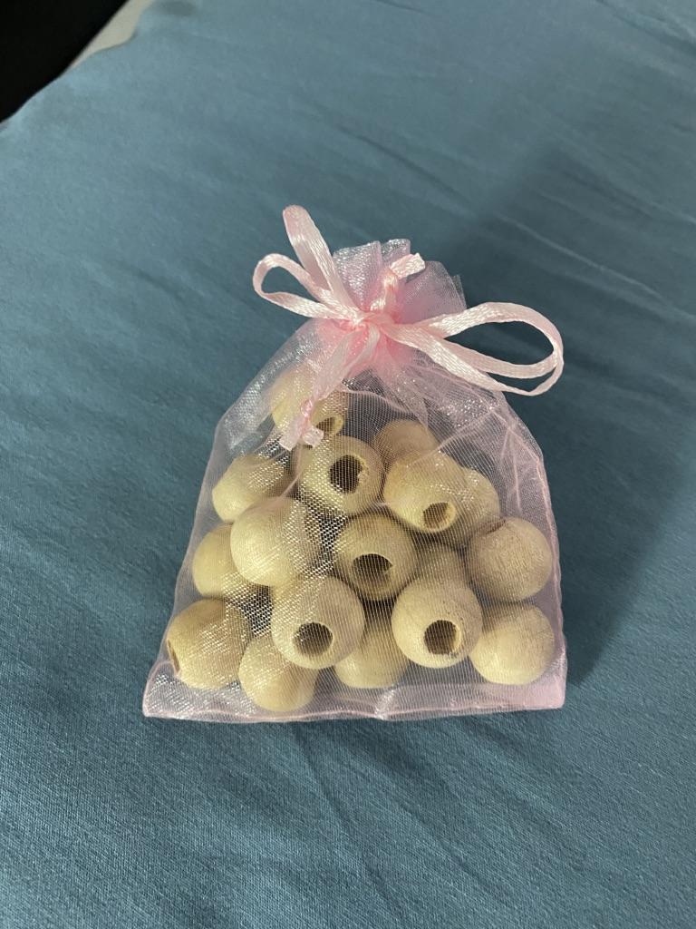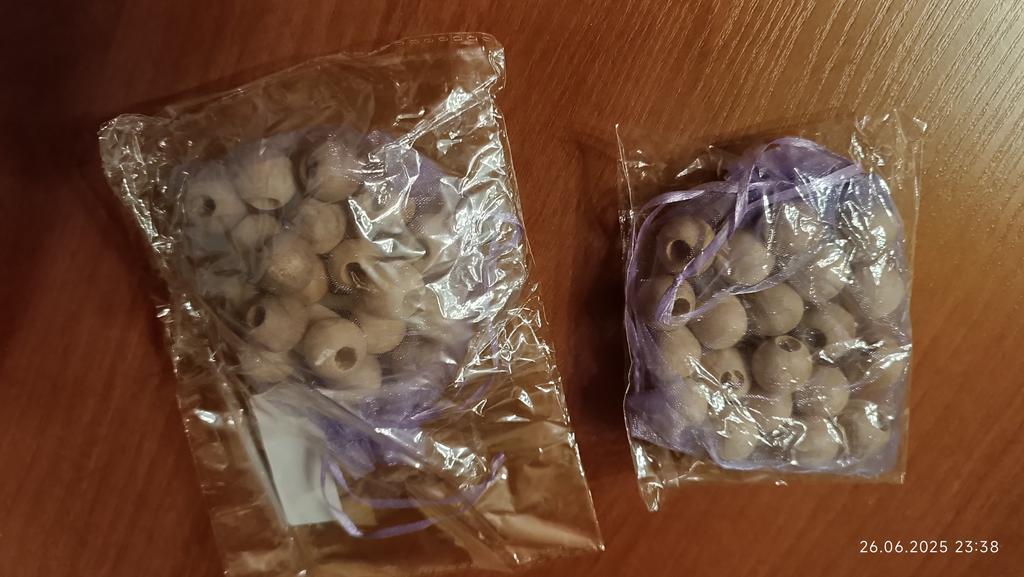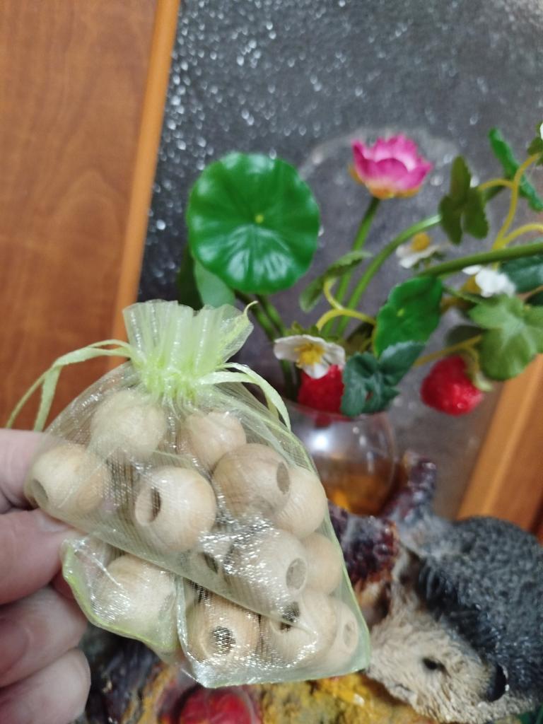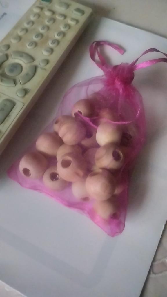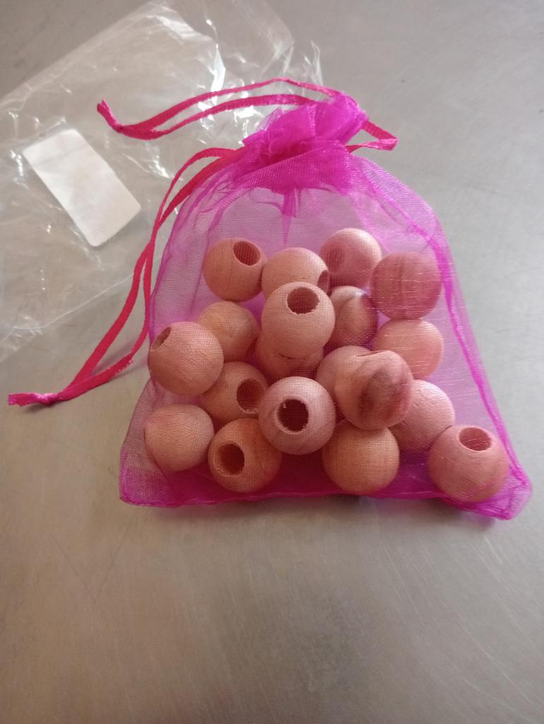 Las bolas son de madera, parece que tienen olor, las puse en el armario