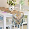 Camino de mesa con grandes patrones, bandera azul china para mesa de té, funda para mueble de TV con borlas