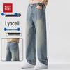 Jeans de Verano Delgados Holgados de Pierna Ancha para Hombre Suaves de Lyocell Elásticos Moda Casual Rectos con Cordón Denim Pantalones Negro Azul Gris