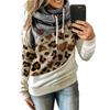 Sudadera con capucha y cuello alto con cordón y estampado de leopardo para mujer