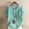 Women's Fashion Round Neck Short Sleeve T-shirt Casual Cotton Linen Graphic Shirt Leisure Loose Flame Mountain Prined Summer Blouse Tops
