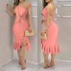Vestido sexy de verano con un hombro al descubierto, manga corta, color liso y volantes para mujer