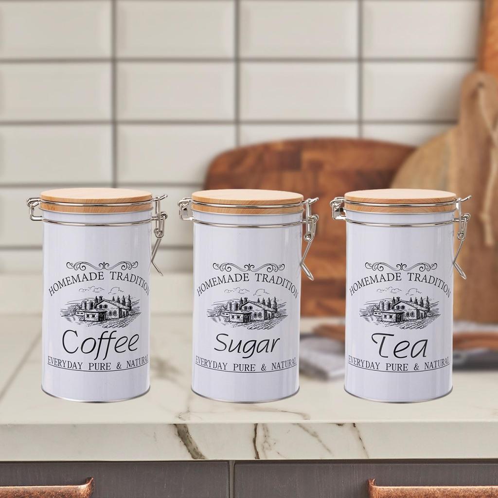 - 【Encanto campestre】: Juego de 3 botes rústicos de gran capacidad para café, azúcar, té, juego de almacenamiento de cocina.