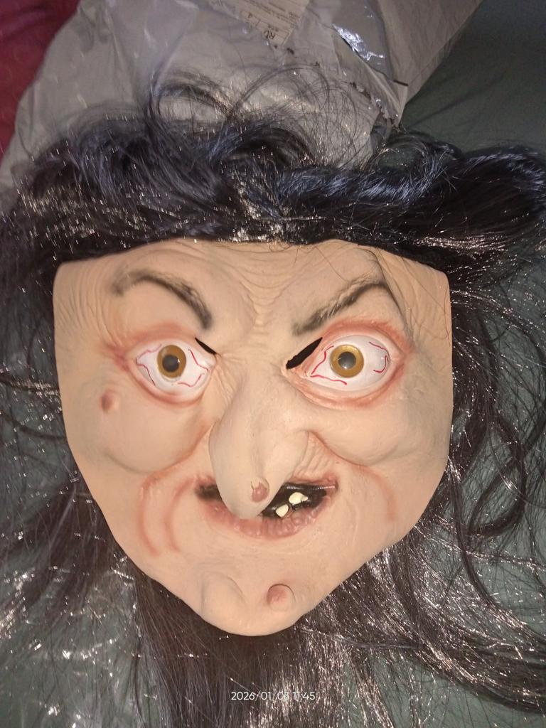 Máscara de fantasma de pelo largo para Halloween, máscara de bruja de terror, cabeza de látex aterradora con sombrero, accesorios para espectáculos de baile