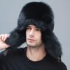 Winter Men Real Fox Fur Hats Russian Fashion Silver Fox Fur Cap Protect Ear Warm High Quality Bomber Hat