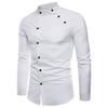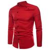 Camisa de hombre de color liso, de un solo pecho, corte entallado, doble tapeta, camiseta de primavera para uso diario