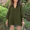 Spring and Autumn Women's Blouse V-neck Solid Color Large Size Loose Top