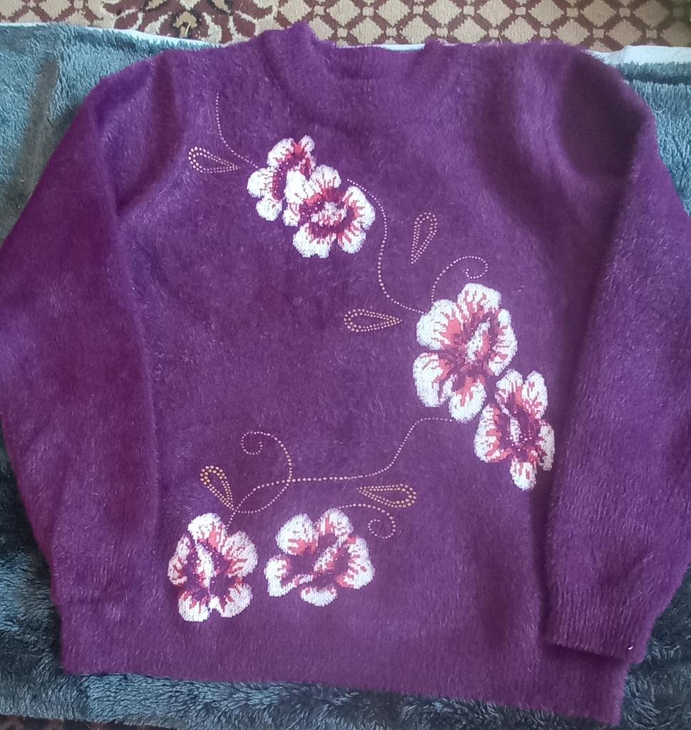 El suéter es agradablemente suave, hermoso, si tan solo fuera un poco más largo. Y por eso le doy cinco estrellas.