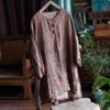 Johnature Camisetas vintage para mujer, con estampado floral, cuello redondo, manga larga, holgadas, con botones, para otoño