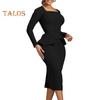 Transforma tu look con su diseño de color sólido, cuello cuadrado y manga larga que irradia elegancia y encanto.