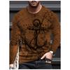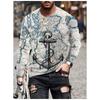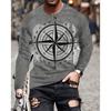 Camiseta de Manga Larga con Estampado 3D de Ancla y Brújula, Top de Primavera y Otoño para Hombre, Retro Street, Oversized, Cuello Redondo