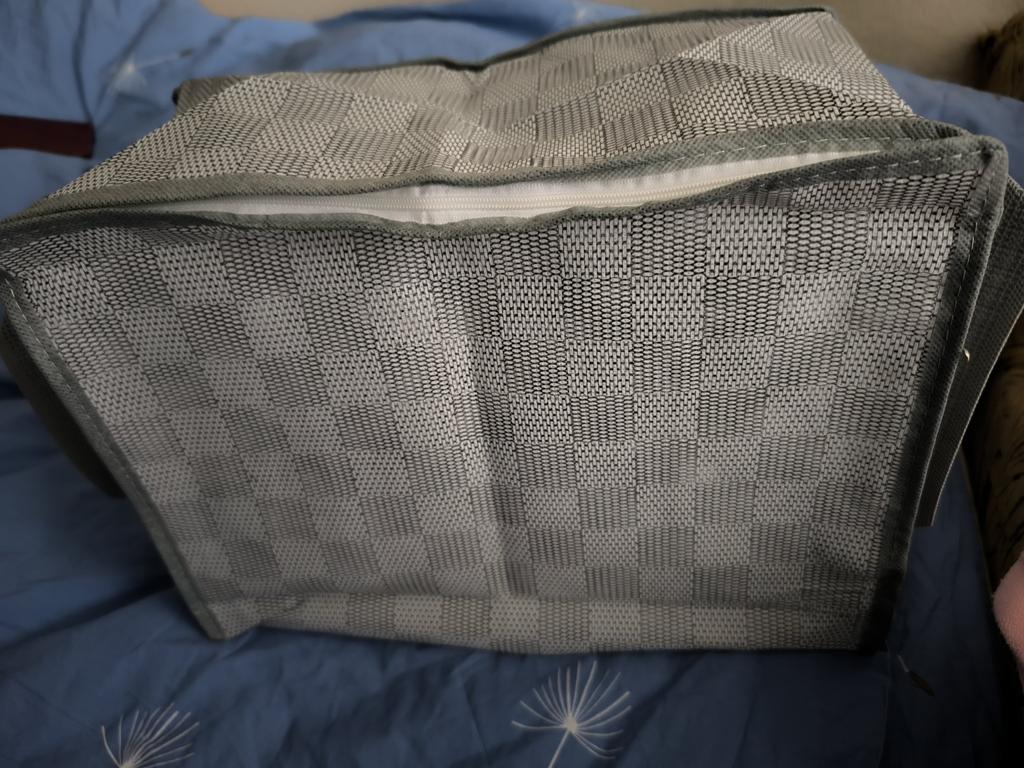 Esto no es un bolso, sino una caja de almacenamiento, solo que tejida, ligera, fina, creo que impermeable, del tamaño que quería, con asas laterales. Estoy contenta con la compra.